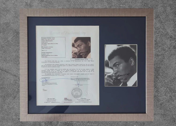 Una fotografía autografiada de Muhammad Ali es mucho más que un simple objeto de colección; es un pedazo de historia viva. Capturando la esencia de uno de los deportistas más icónicos del siglo XX, esta imagen firmada por "The Greatest" no solo representa su legado en el boxeo, sino también su influencia en la cultura y la lucha por los derechos civiles. Tener una foto firmada por Ali es poseer una reliquia que encarna coraje, determinación y la lucha por la justicia, haciéndola un tesoro invaluable para cualquier coleccionista.
