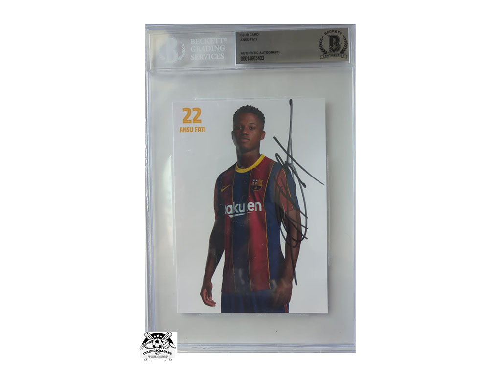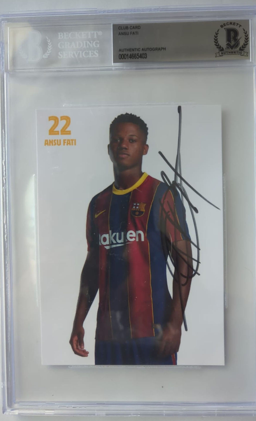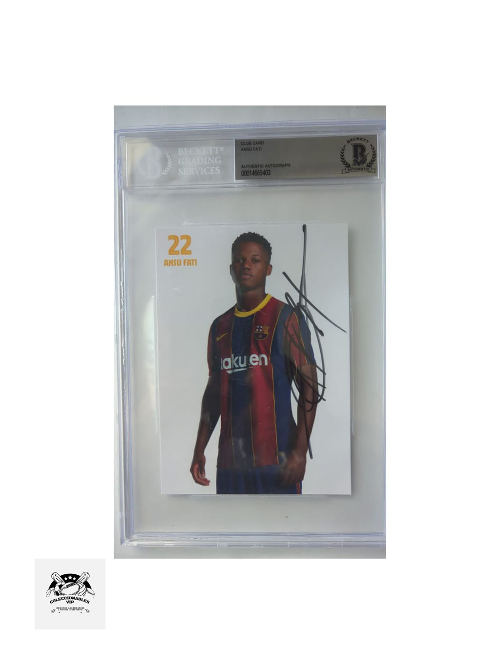 Ansu Fati FC Barcelona Postal autografiada firma certificada por Beckett 00014665403.