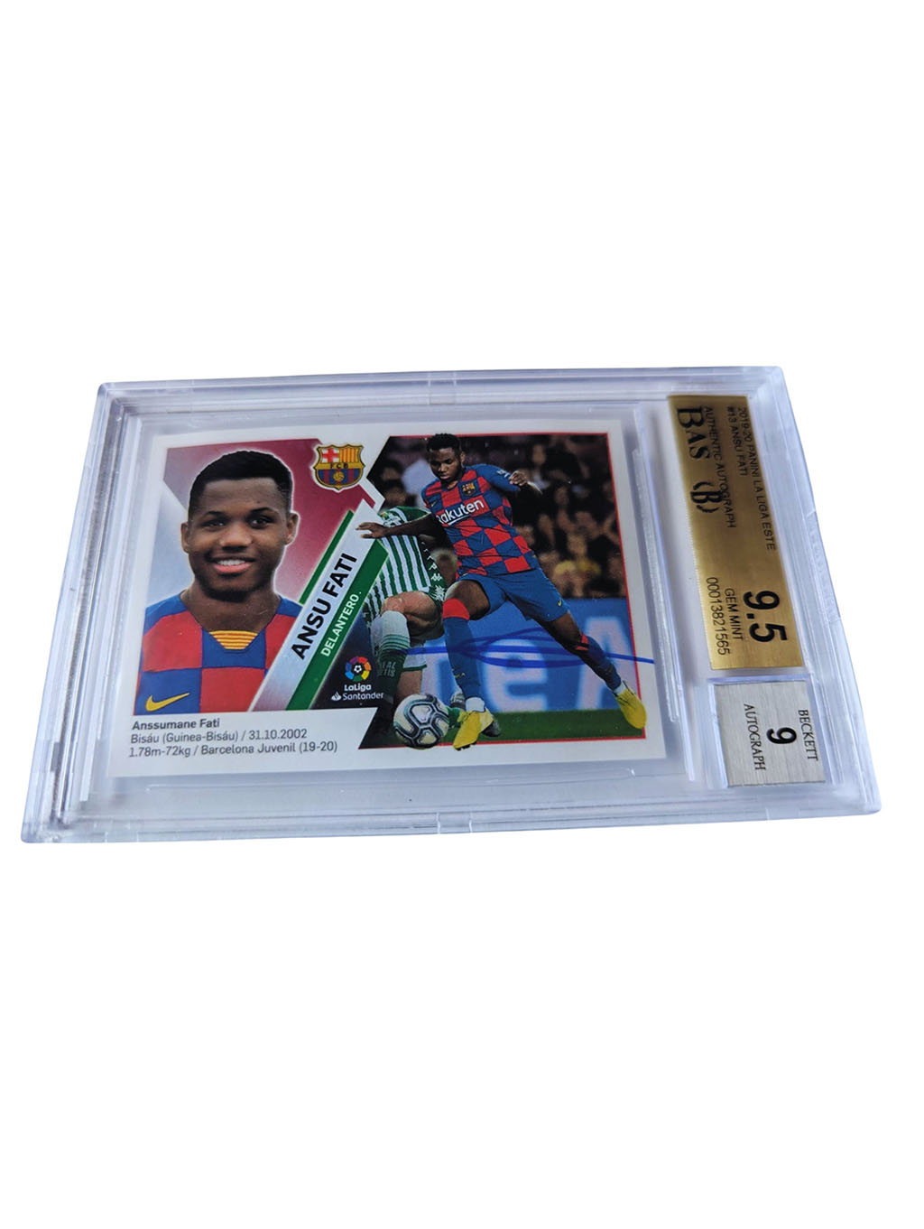TARJETA # 00013821565 autografiada por Ansu Fati autógrafo certificado por Beckett.