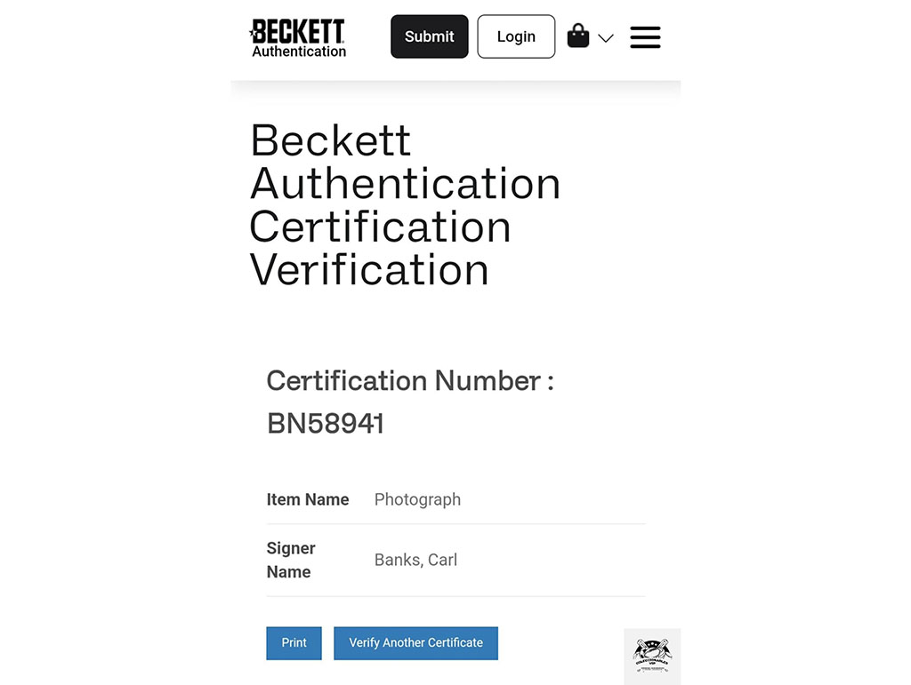 Firma certificada por una de las empresas más grandes y reconocidas de la industria Beckett Authentication Services