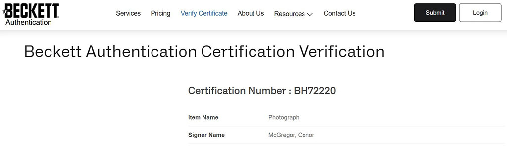 Artículo 100% original autenticado por una de las mejores empresas autenticadoras del mundo Beckett, la autenticidad se puede corroborar directamente en la página web de Beckett.
