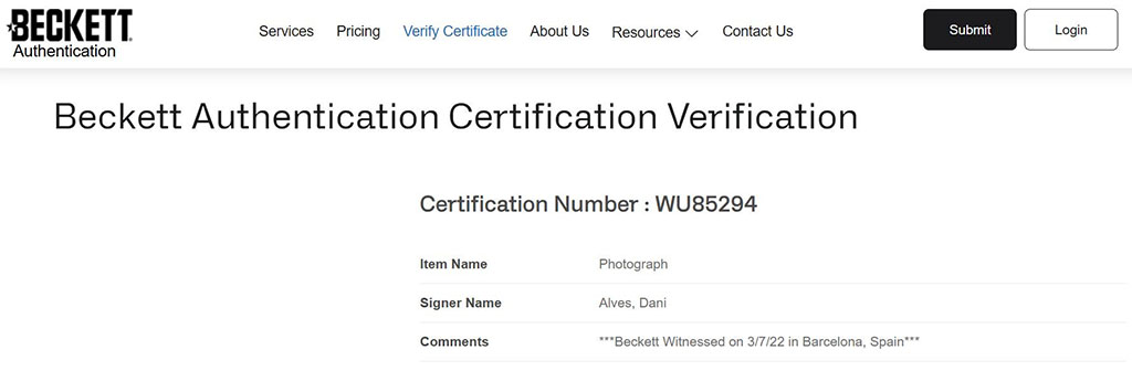 Artículo 100% original autenticado por una de las mejores empresas autenticadoras del mundo Beckett, la autenticidad se puede corroborar directamente en la página web de Beckett.