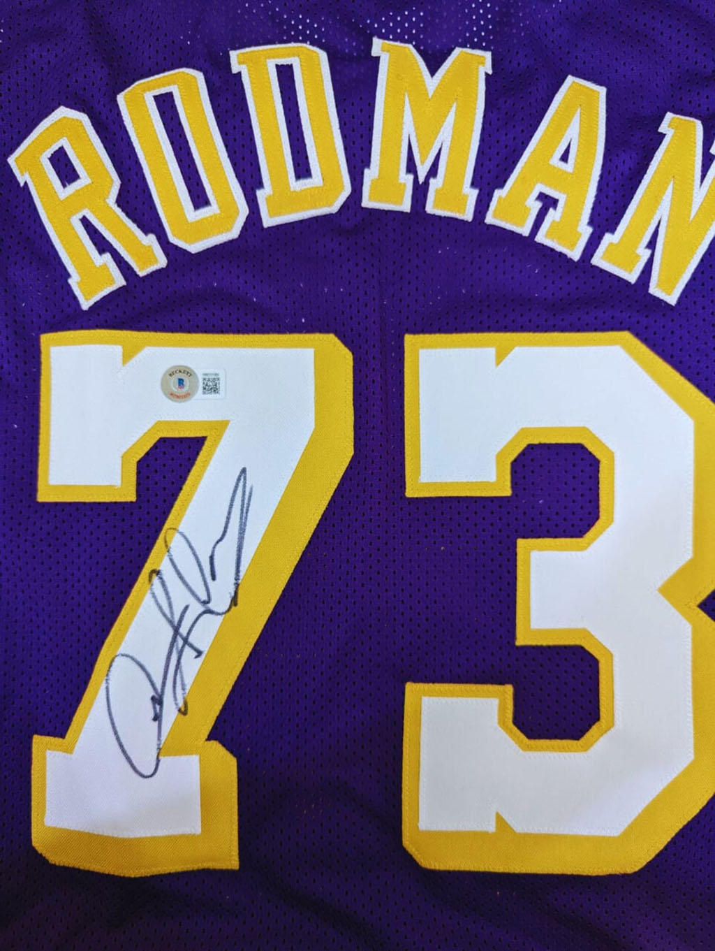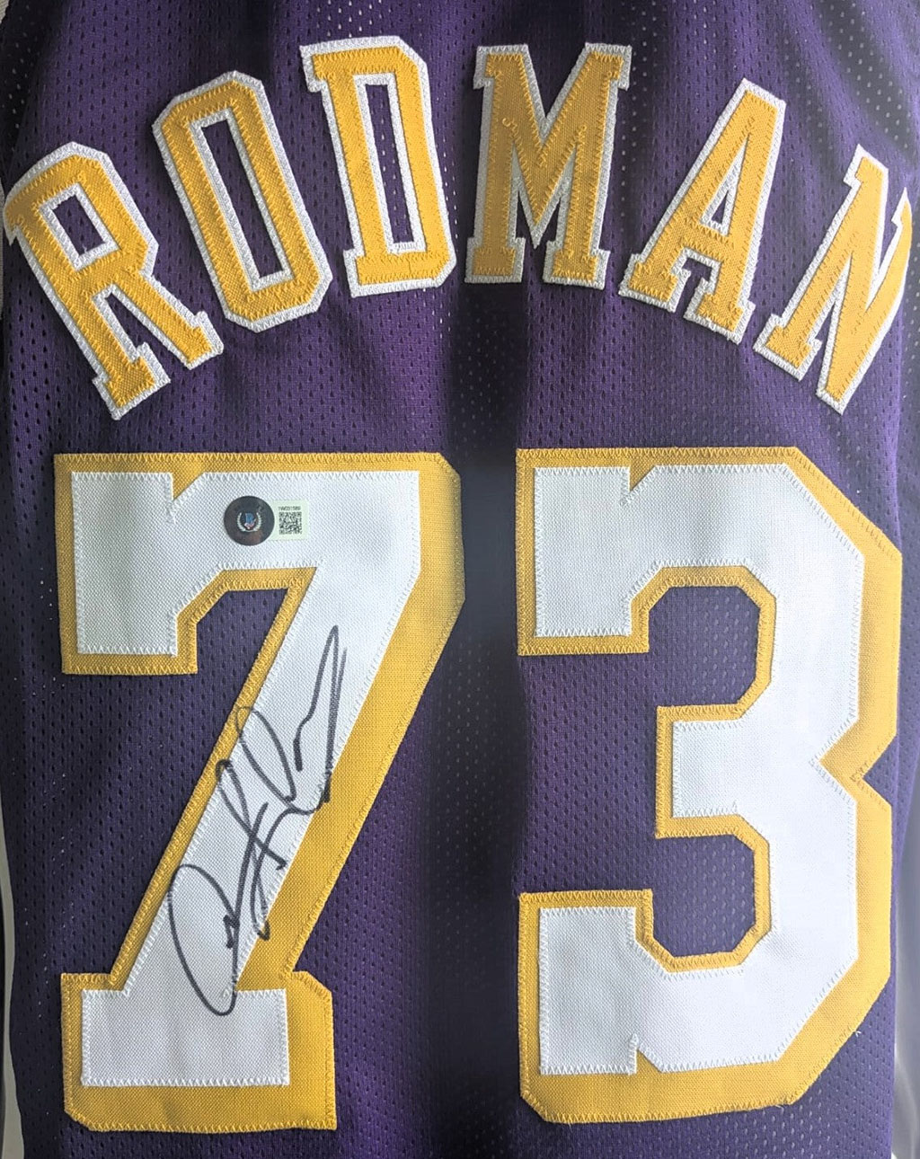 Dennis Rodman Playera Los Angeles autografiada firma autentificada por la compañía Beckett con el número 1W031589.