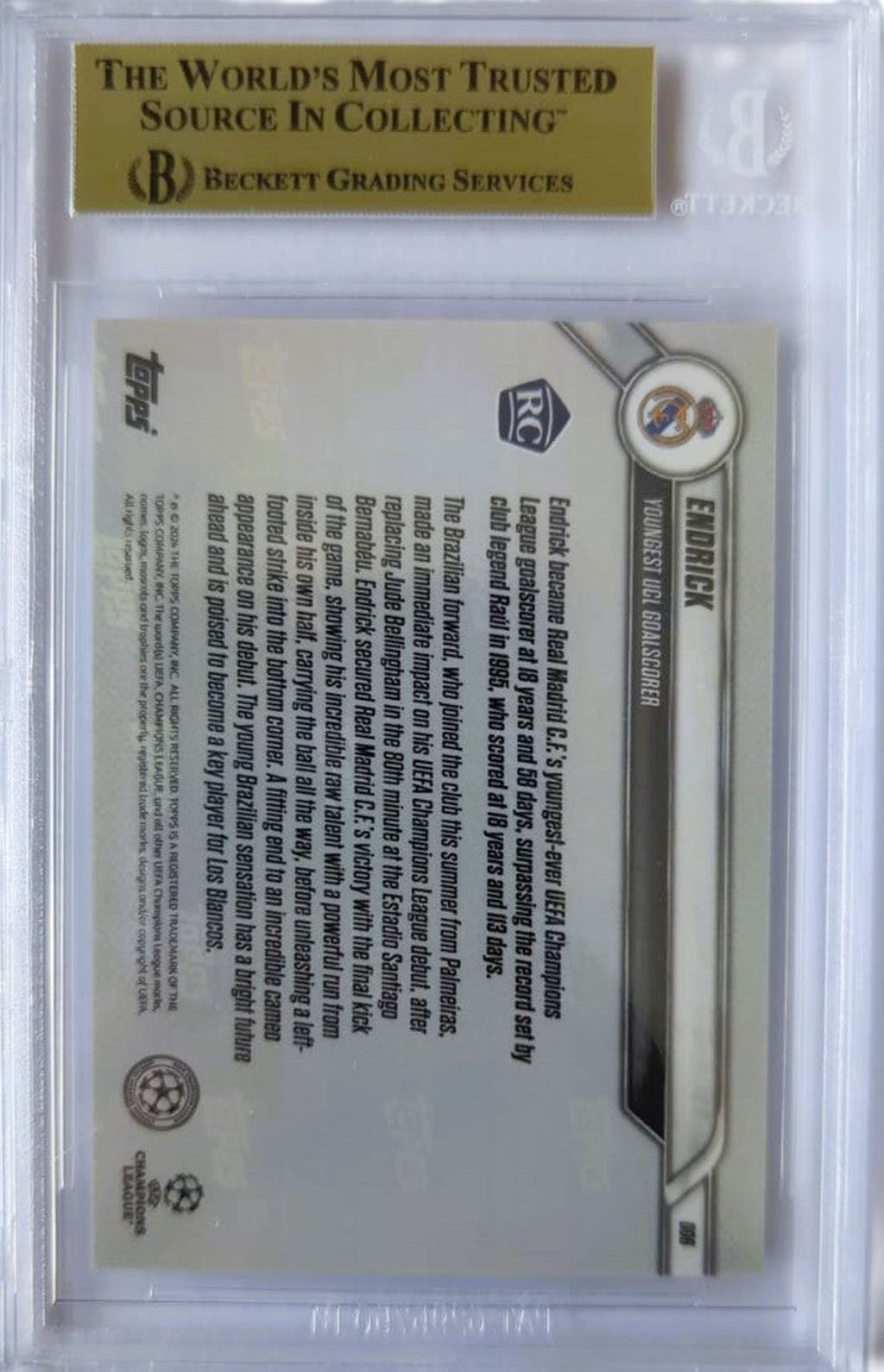 Endrick Felipe Tarjeta Topps Now UCL Real Madrid Graduada por Beckett 0017555101.