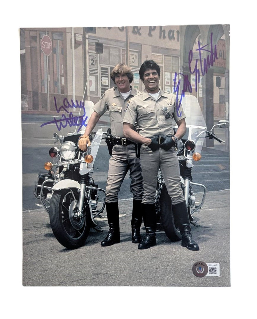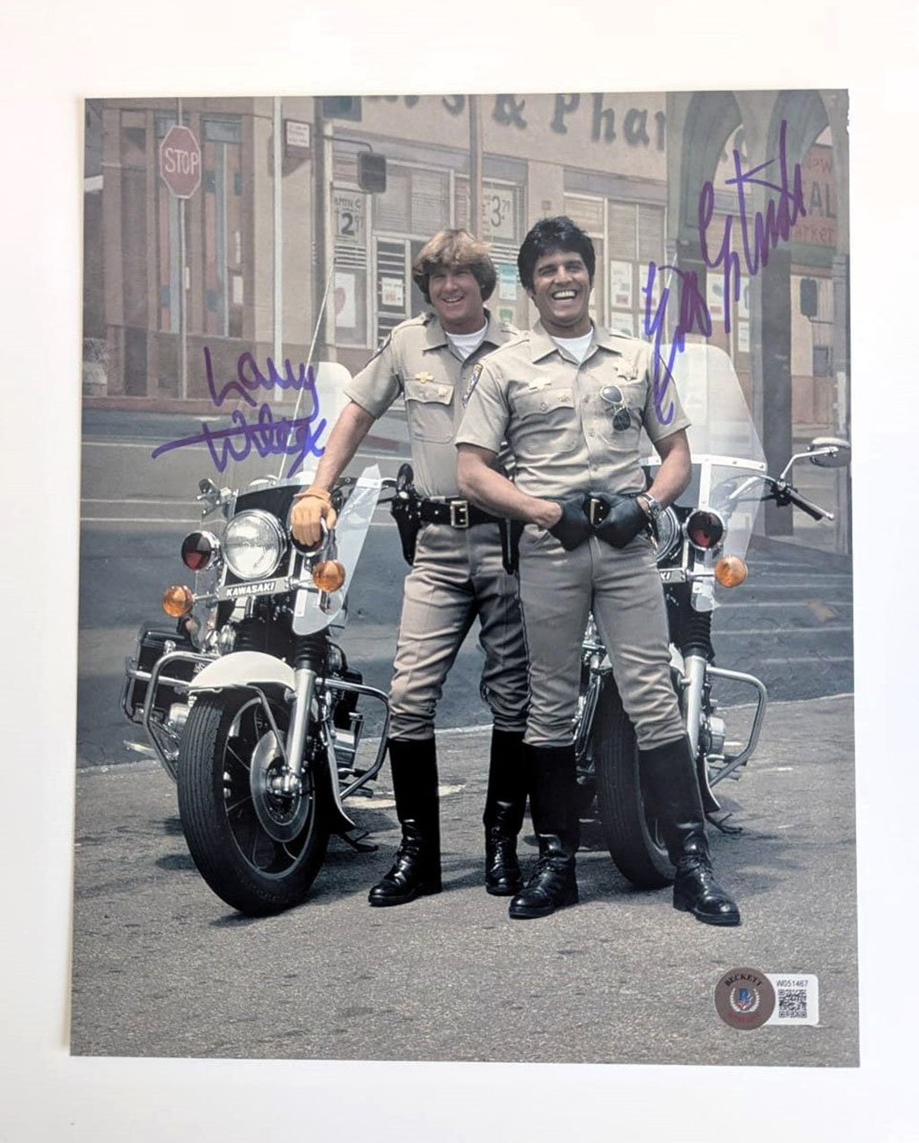 Erik Estrada y Larry Wilcox Patrulla Motorizada Fotografía Autografiada firma certificada por Beckett W051467.