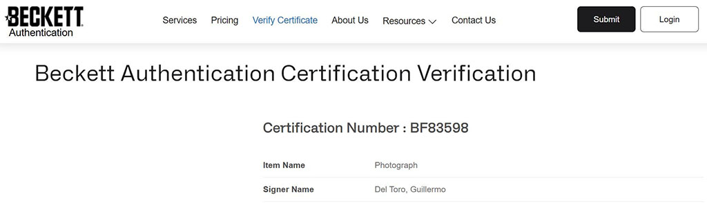 Guillermo del Toro fotografía autografiada Hellboy firma certificada por Beckett BF83598.