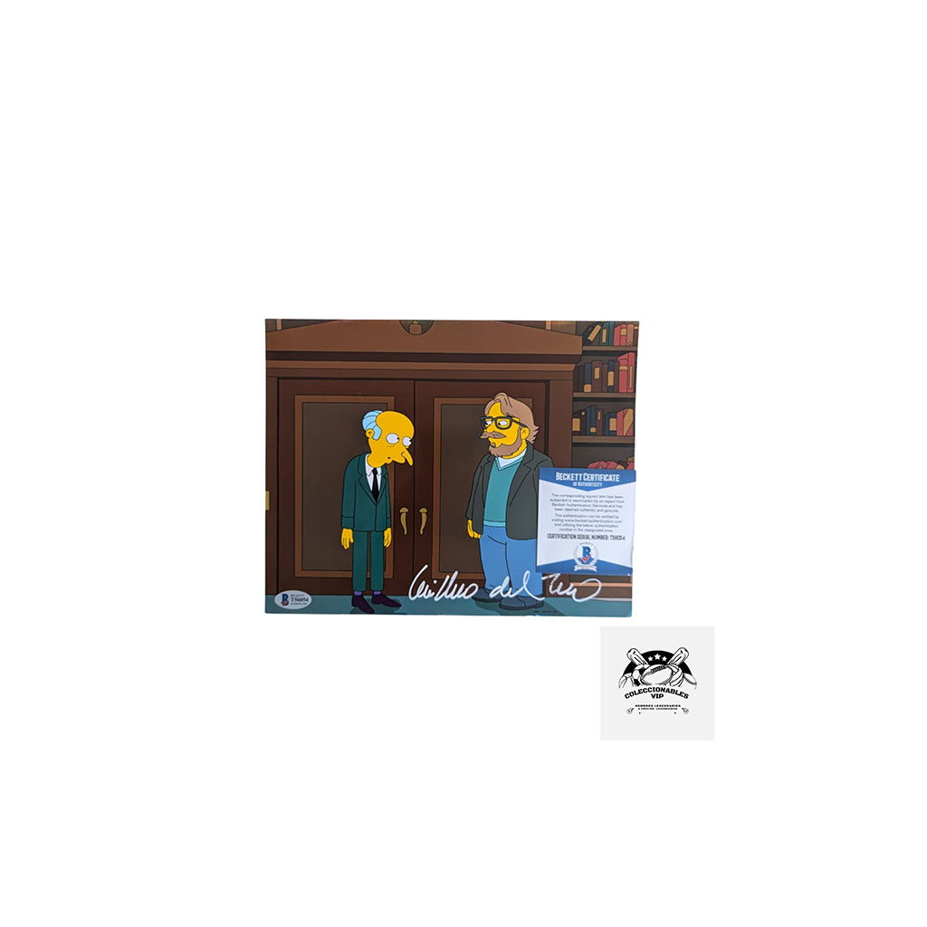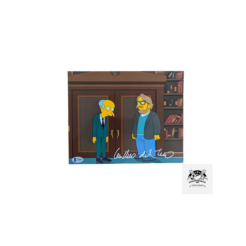 Guillermo del Toro fotografía Los Simpsons autografiada firma certificada por Beckett T56054.
