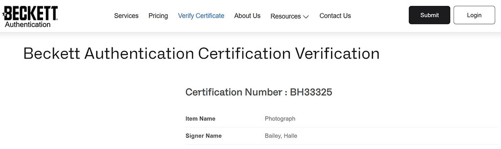 Artículo 100% original autenticado por una de las mejores empresas autenticadoras del mundo Beckett, la autenticidad se puede corroborar directamente en la página web de Beckett.