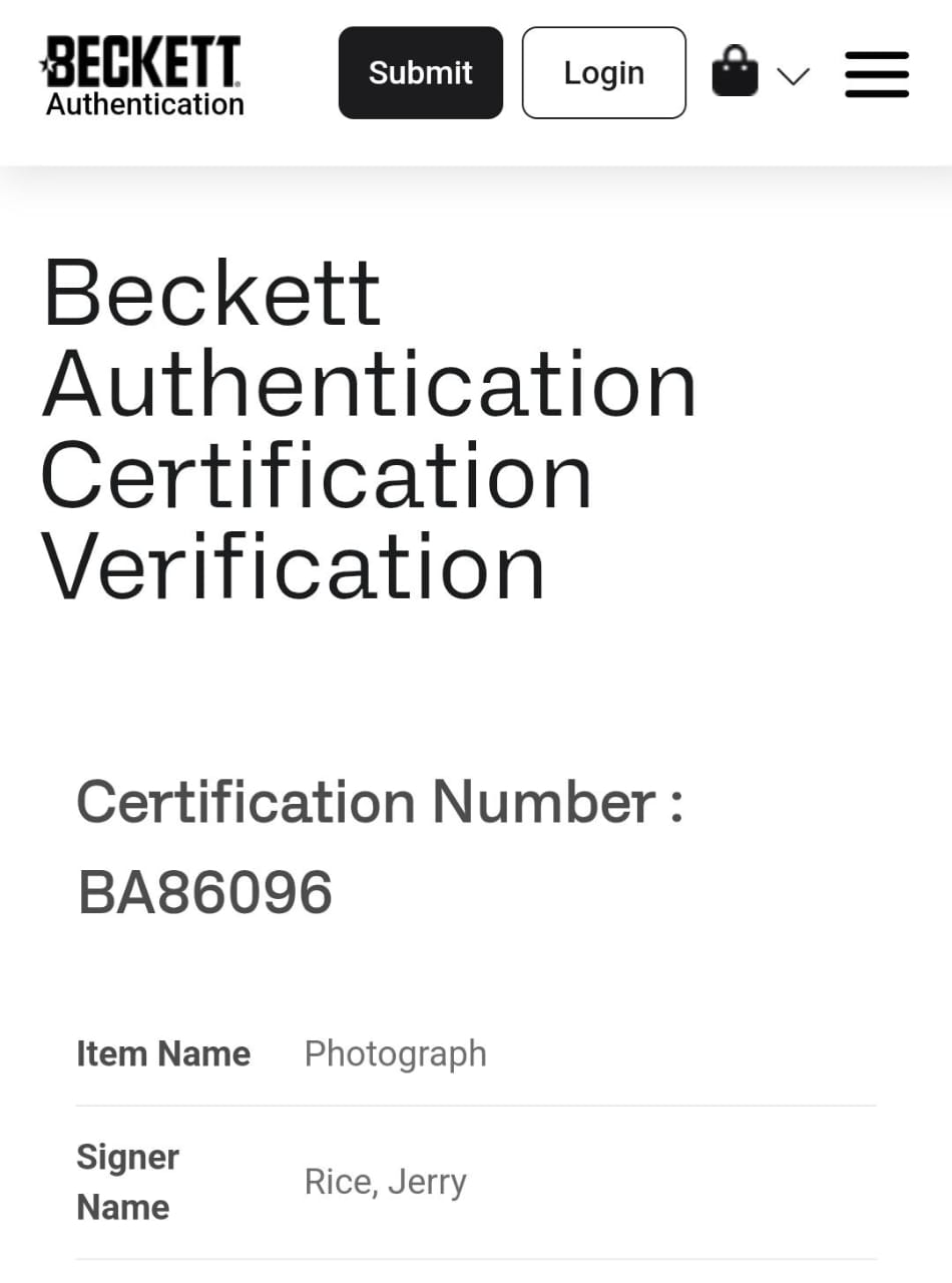 Firma certificada por una de las empresas más grandes y reconocidas de la industria Beckett Authentication Services.
