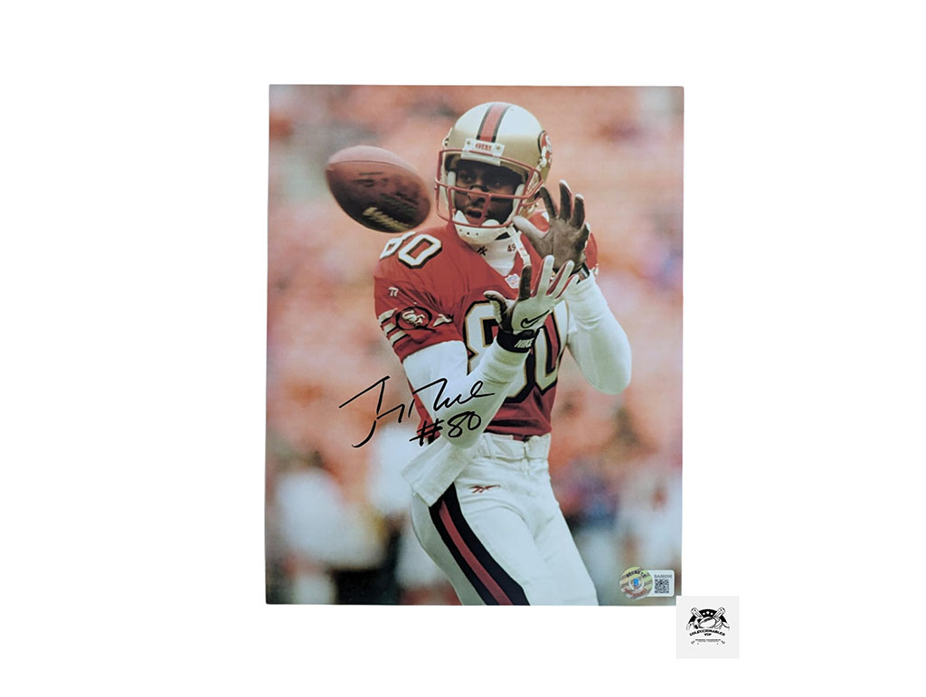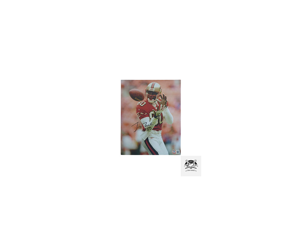 Jerry Rice atrapando Fotografía autografiada firma certificada por Beckett BA86096.