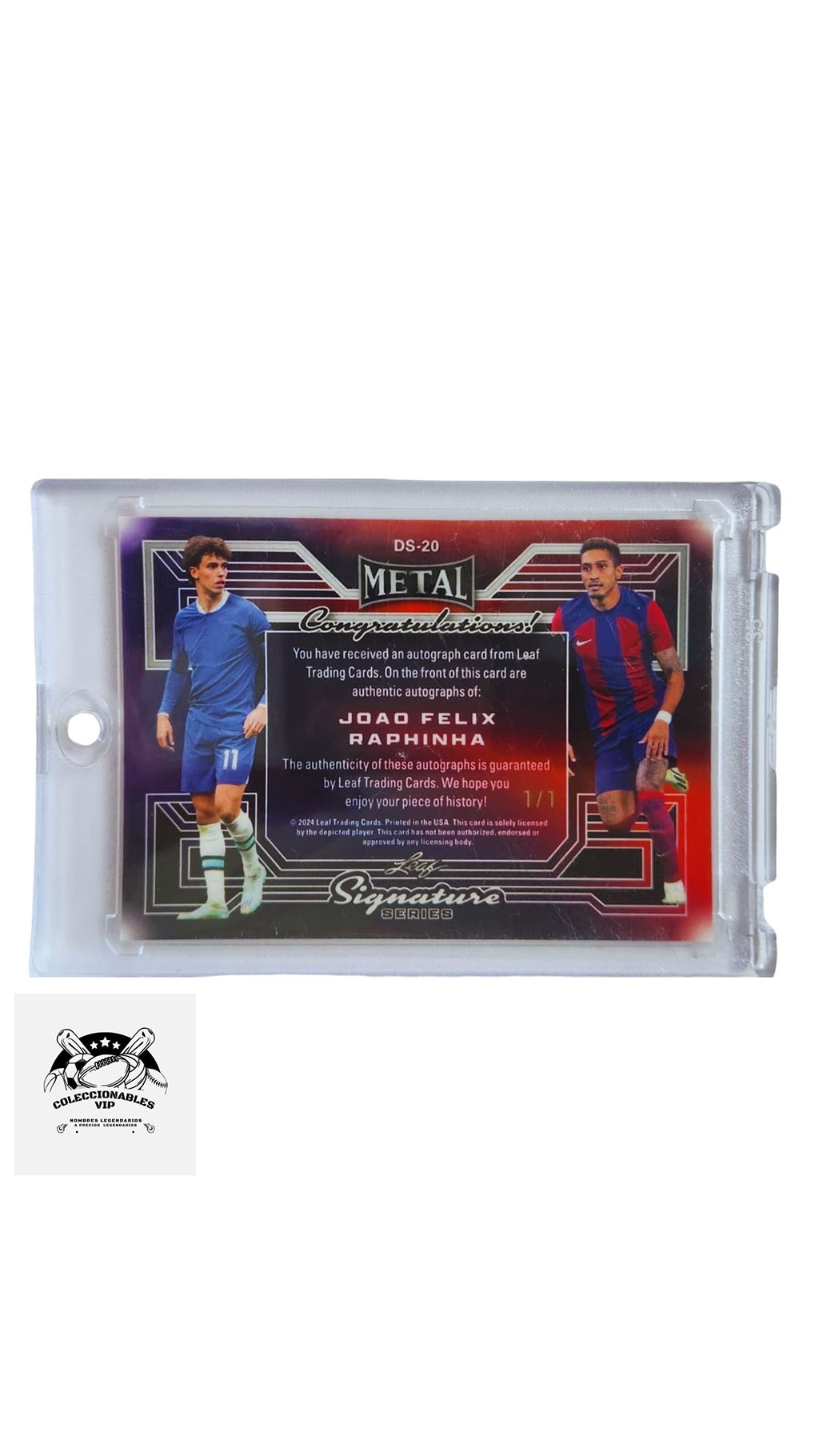 Tarjeta Leaf autografiada por João Félix y Raphinha, edición limitada 1/1.