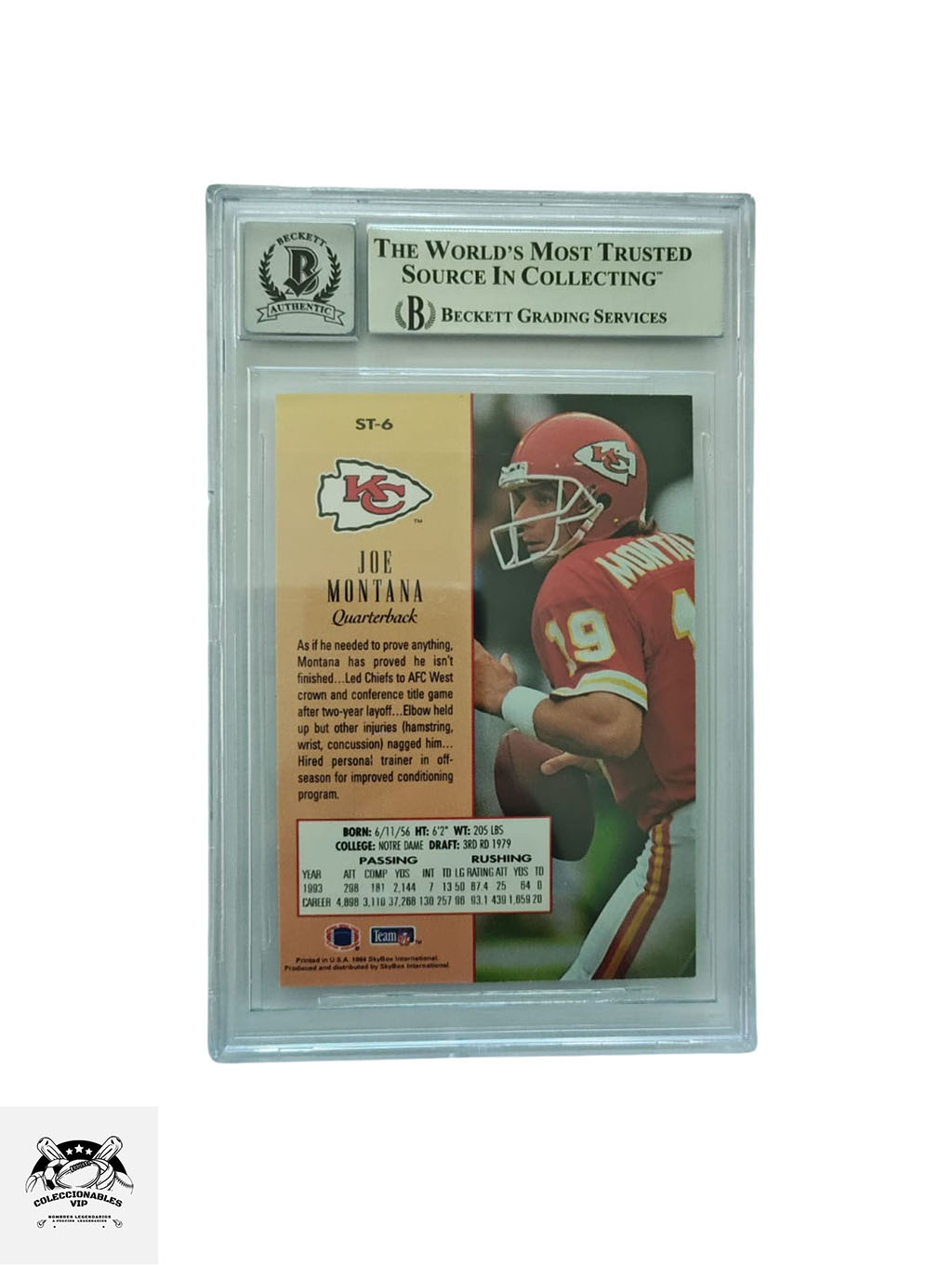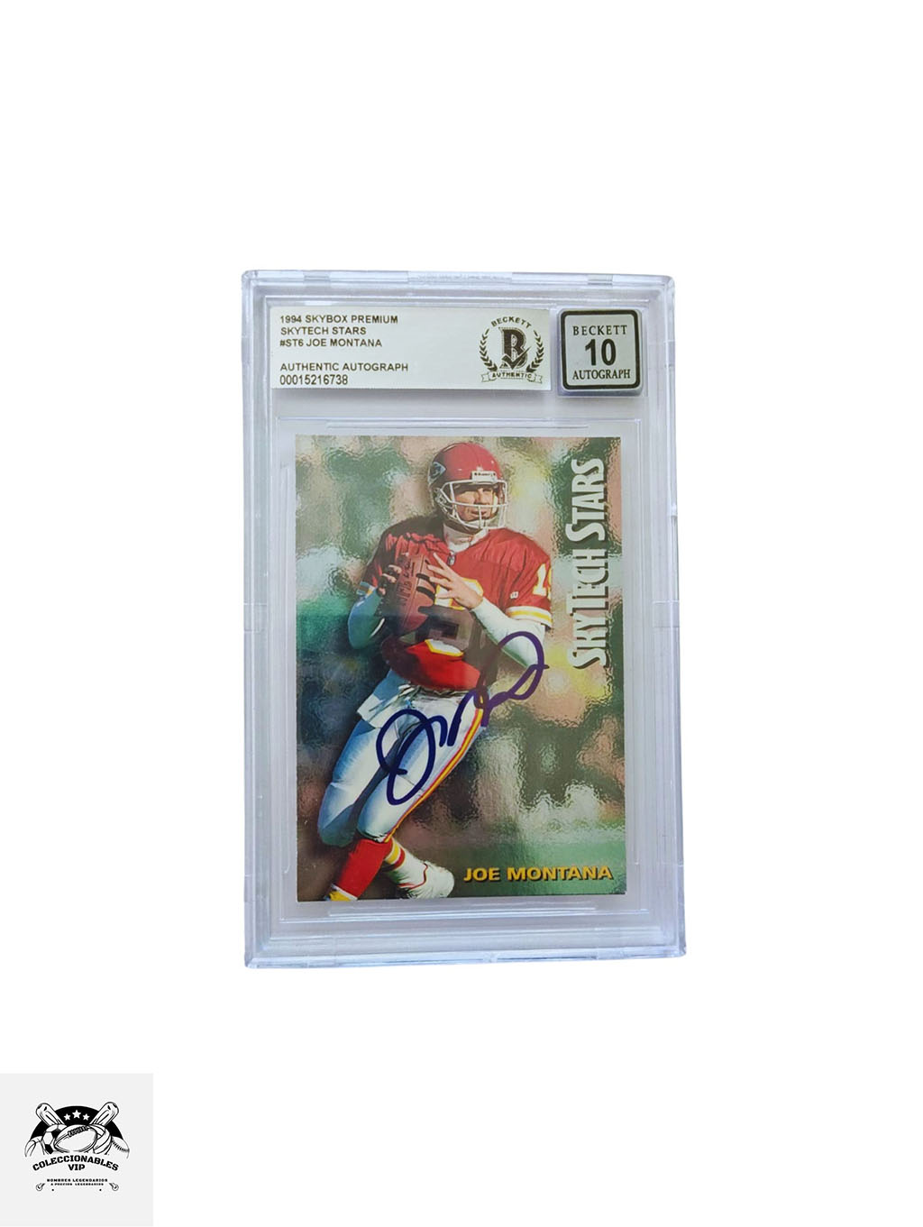 TARJETA Skybox Premium 00015216738 autografiada por Joe Montana certificado el autógrafo por Beckett.