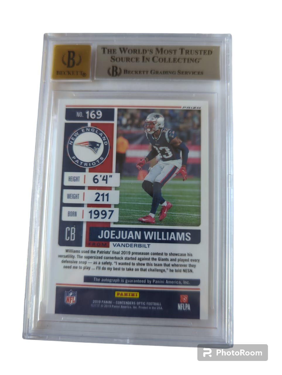 Joejuan Williams Patriots Tarjeta autografiada y graduada por Beckett 0016219136