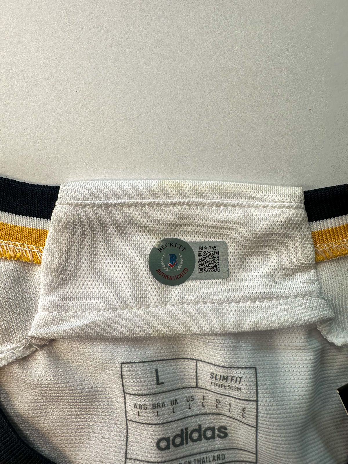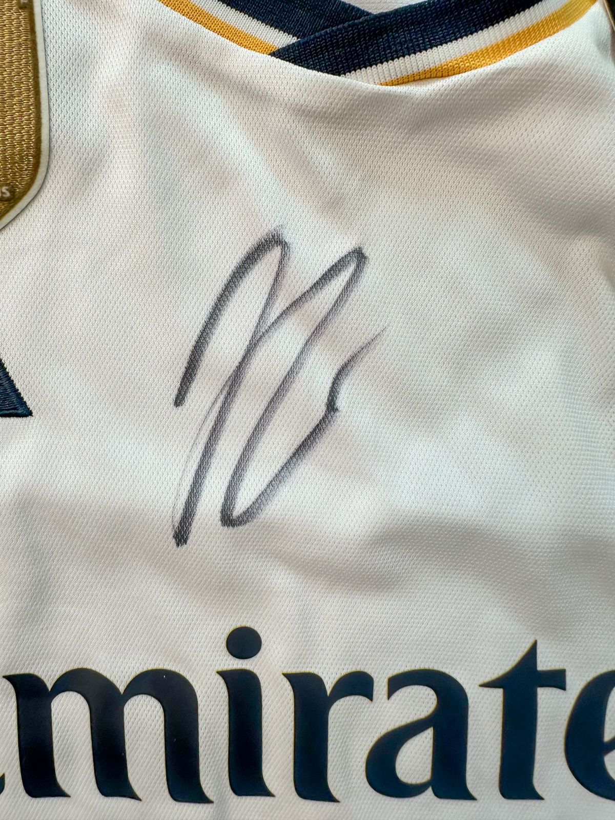 Jude Bellingham Playera Real Madrid autografiada, firma certificada por Beckett BL91745.