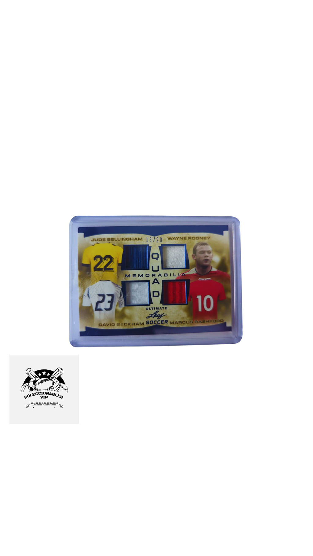 Tarjeta Leaf Jude Bellingham y Wayne Rooney, en el frente de la tarjeta encontrarás pieza de playera utilizada durante el juego.
