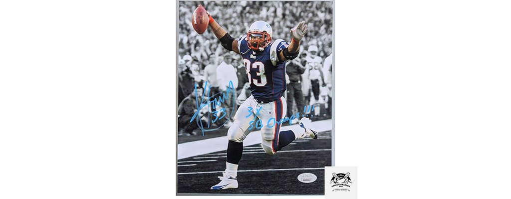 Kevin Faulk fotografía autografiada certificada por JSA WA859215