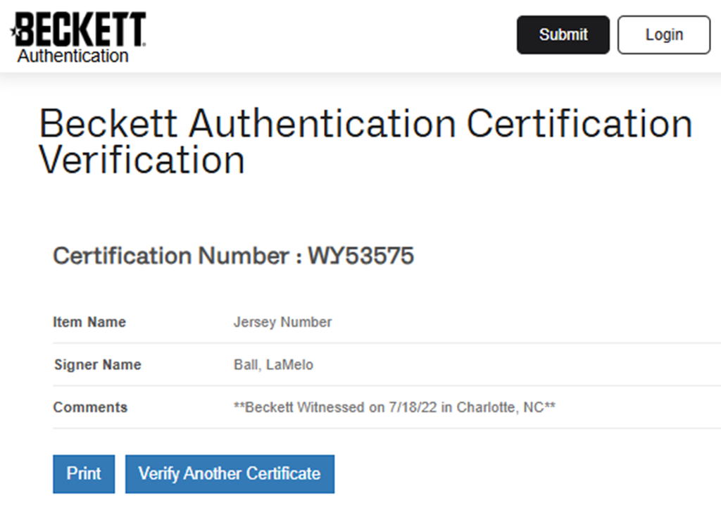 Firma certificada por una de las empresas más grandes y reconocidas de la industria Beckett Authentication Services.