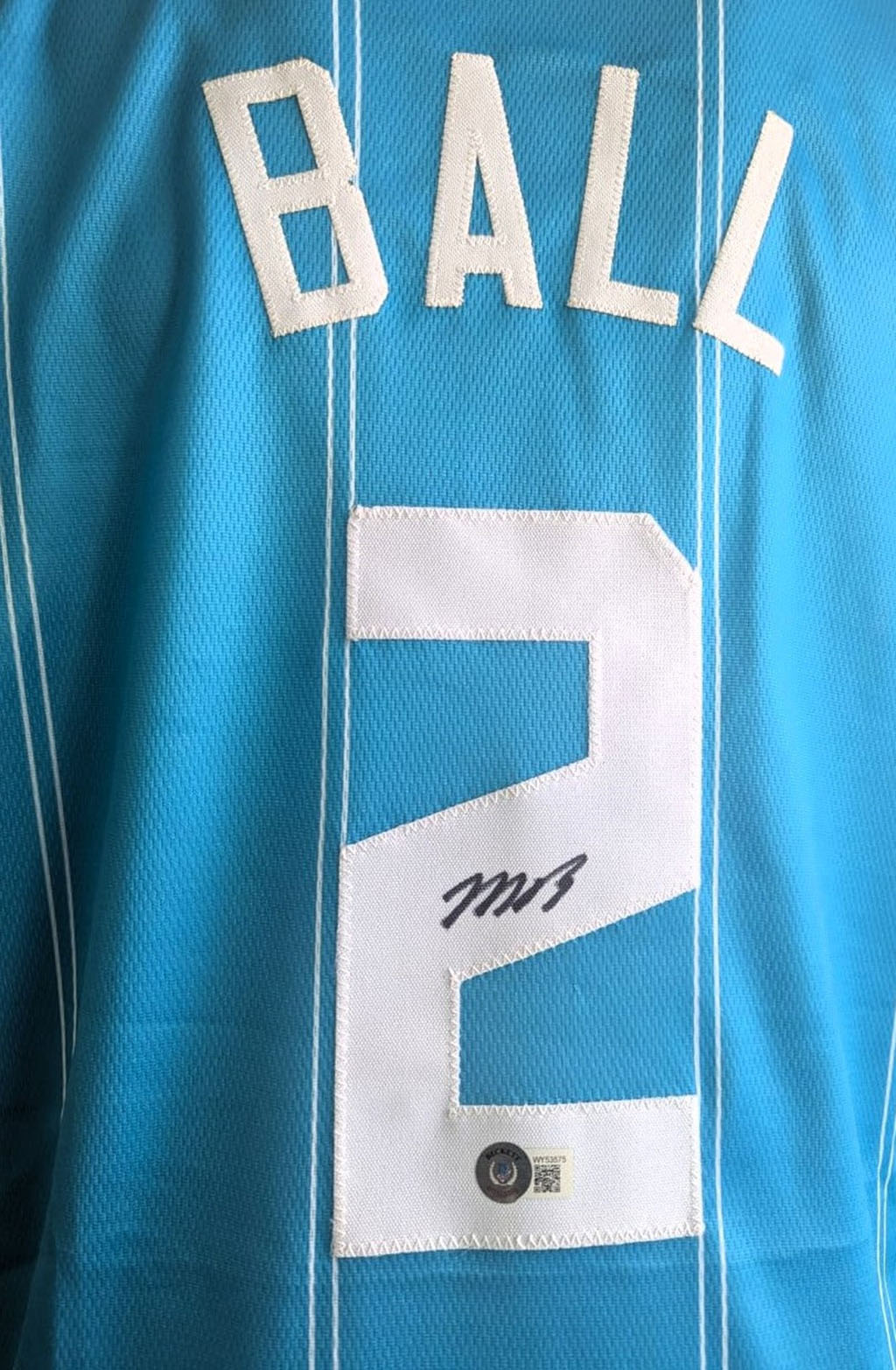 Playera autografiada por Lamelo Ball firma autentificada por la compañía Beckett con el número WY53575.