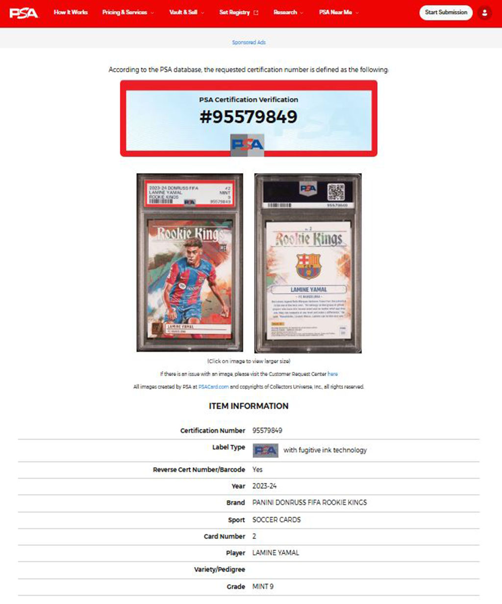 PSA es la empresa de autenticación y clasificación de terceros más grande y respetada del mundo para tarjetas coleccionables y recuerdos.
