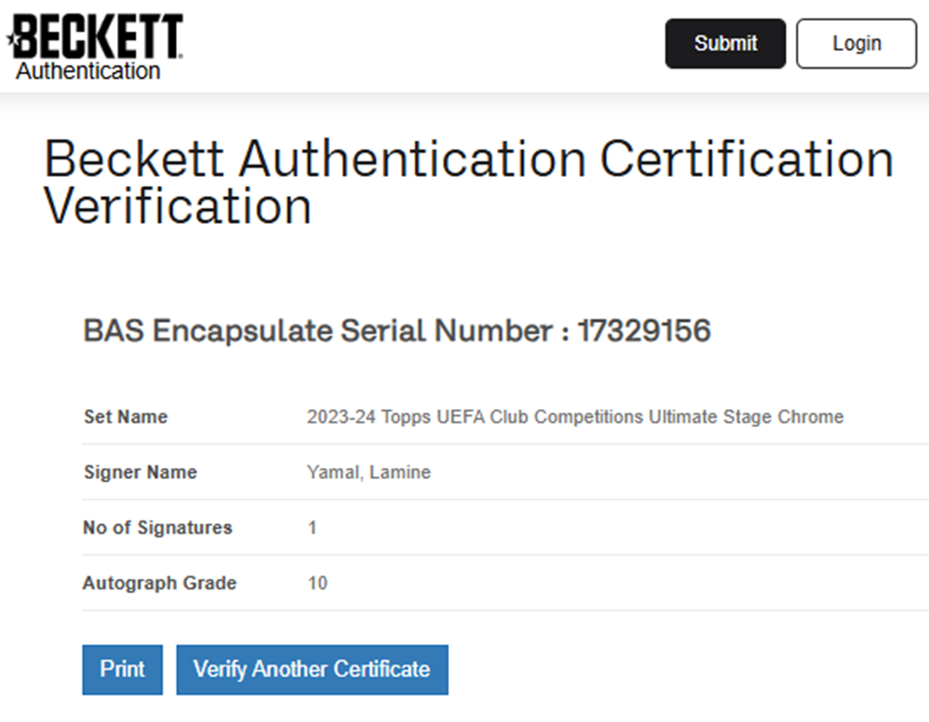 Lamine Yamal Tarjeta Ultimate Stage autografiada firma certificada por Beckett 00017329156.