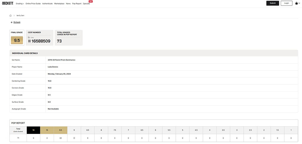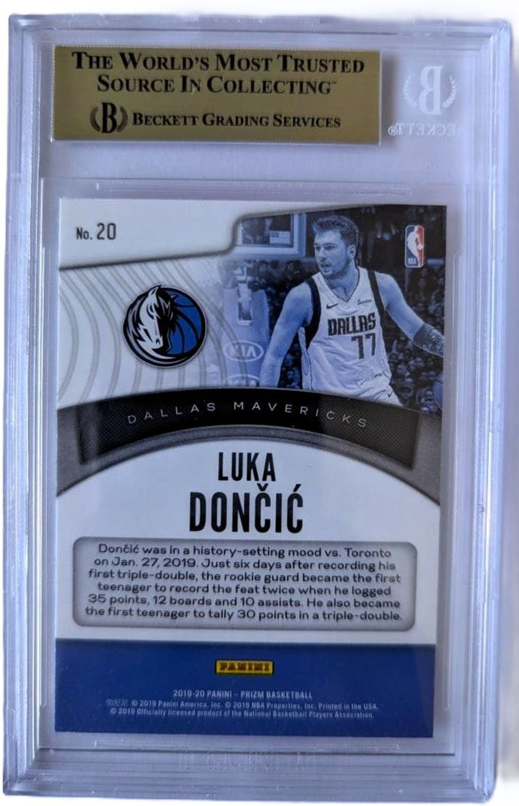 Luka Doncic Tarjeta Panini #20 Mavericks Graduada por Beckett 0016588509