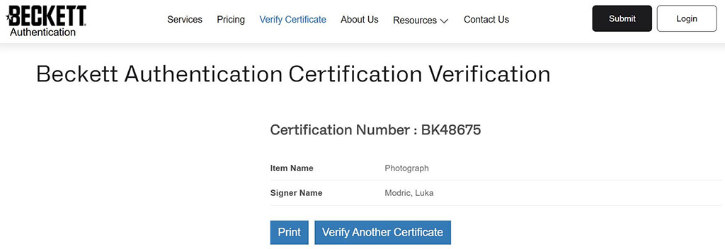 Autógrafo certificado por Beckett.