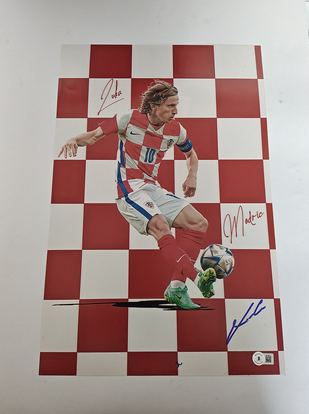 Luka Modric fotografías autografiadas Croacia certificado por Beckett BK48675, BK48676, BK48677.