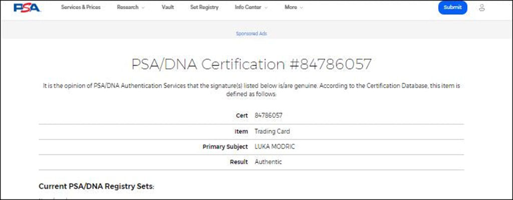 Firma certificada por PSA, empresa de autenticación y clasificación de terceros más grande y respetada del mundo para tarjetas coleccionables y recuerdos.
