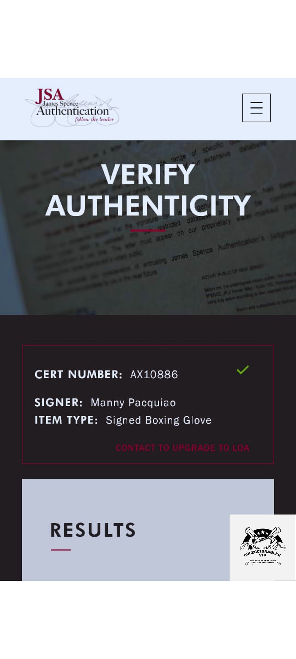 Manny Pacquiao Guante autografiado firma autentificada por la compañía JSA con el número AX10886.