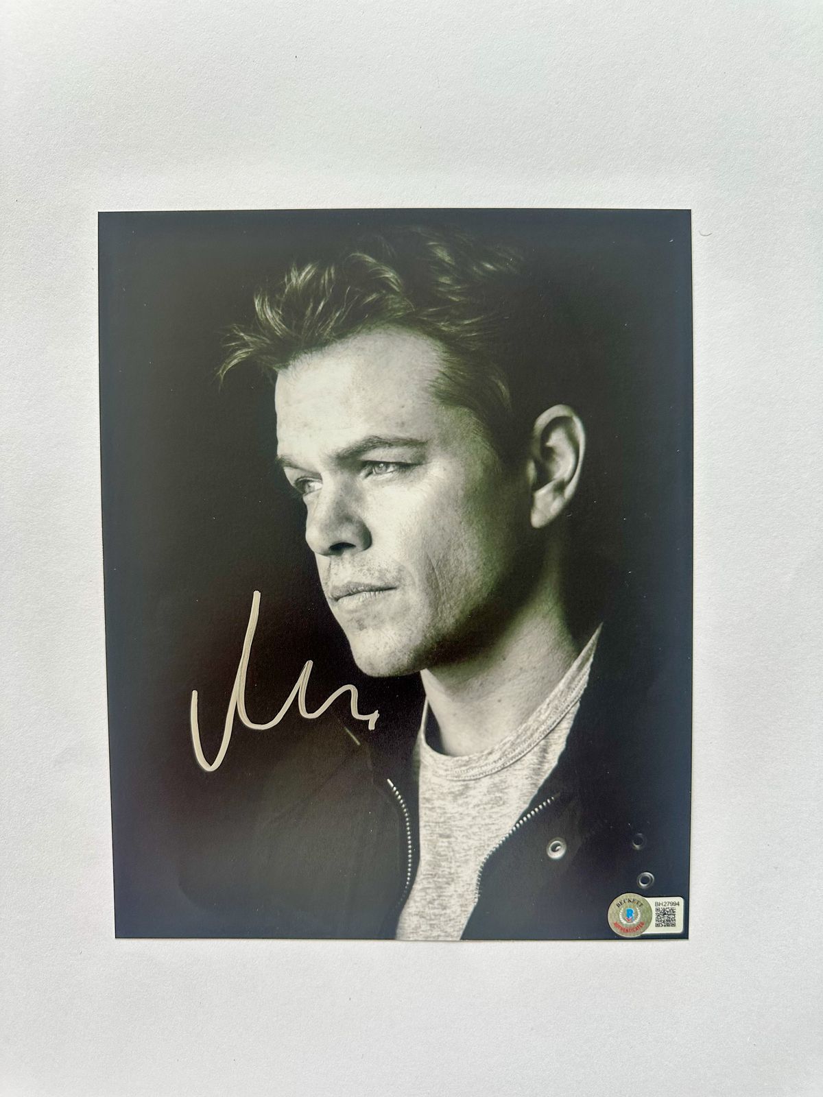 Matt Damon Fotografía autografiada, firma certificada por la compañía Beckett con el número BH27994.
