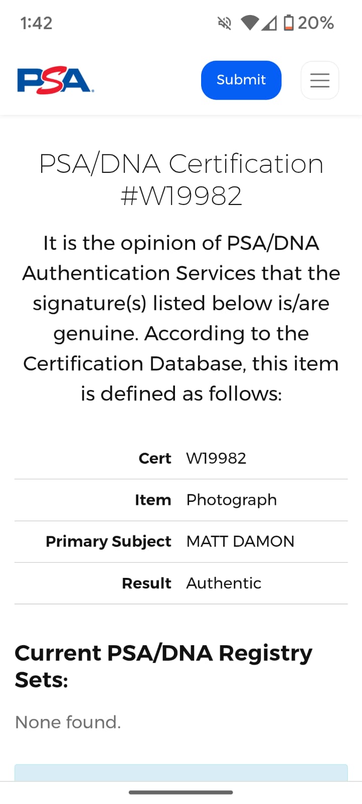 Firma certificada por PSA, es la empresa de autenticación y clasificación de terceros más grande y respetada del mundo.
