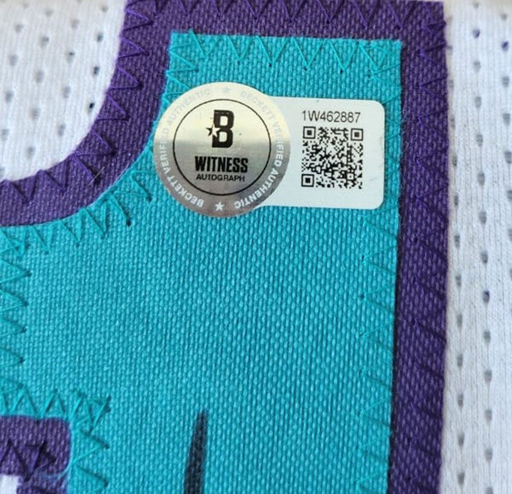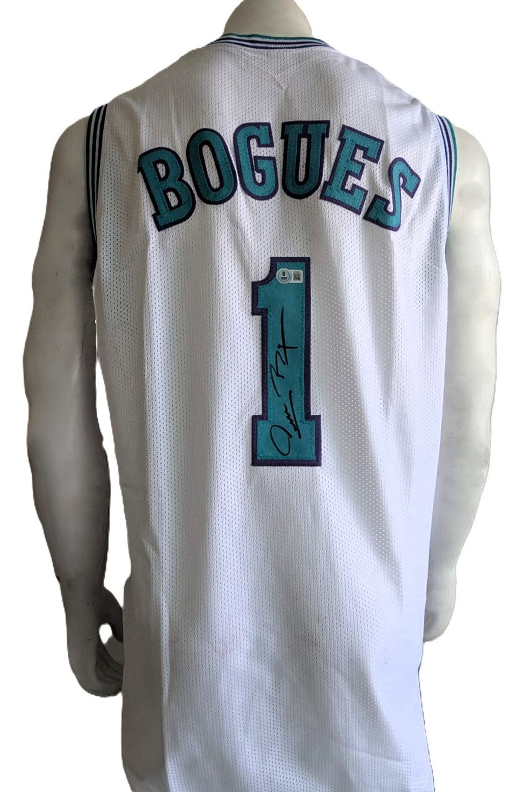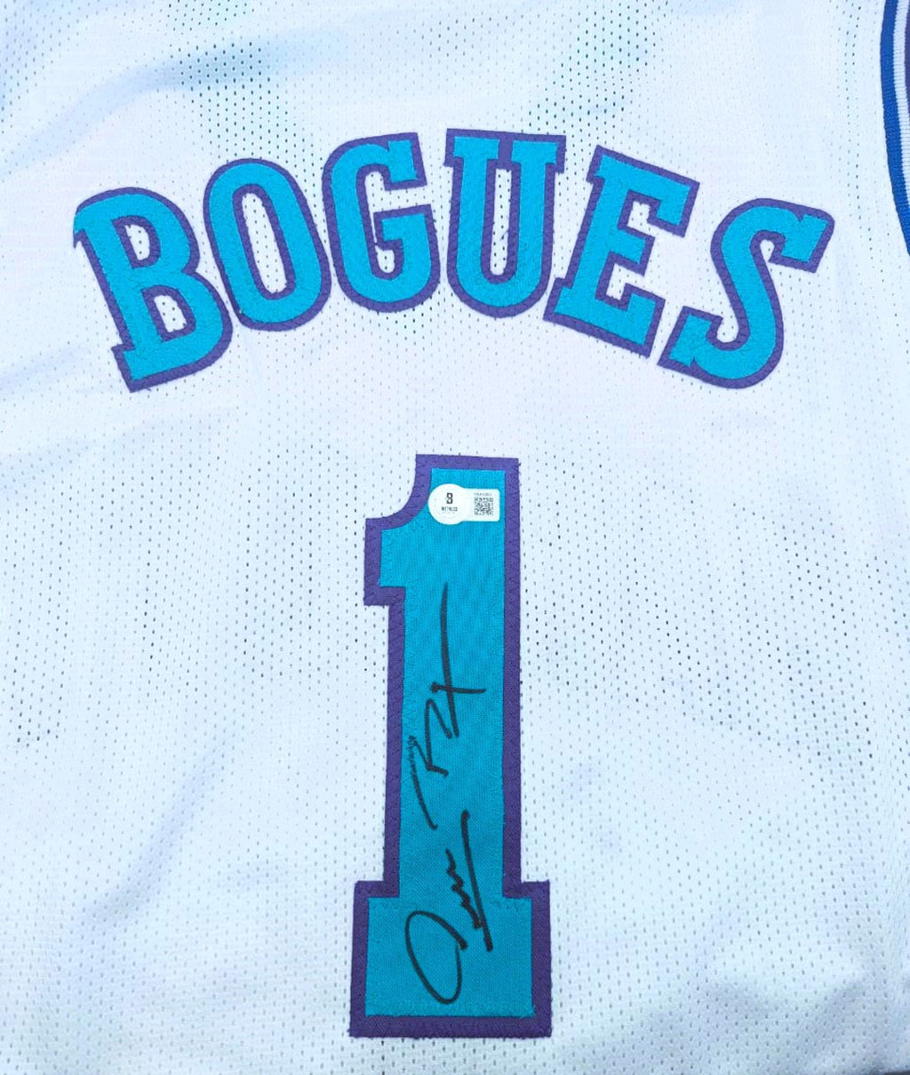Muggsy Bogues Playera Autografiada certificada por Beckett con holograma 1W462887.
