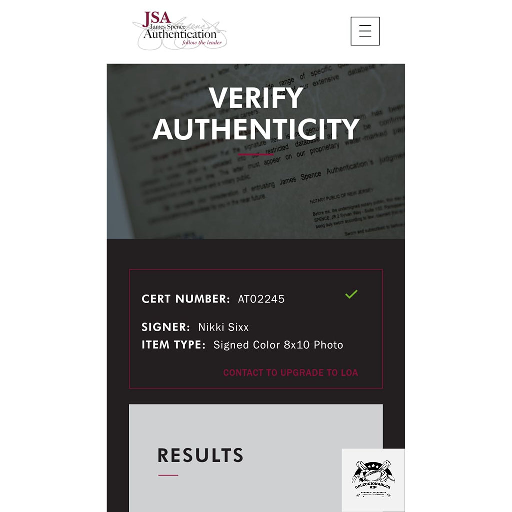 Nikki Sixx grupo Mötley Crüe fotografía autografiada certificada por JSA AT02245