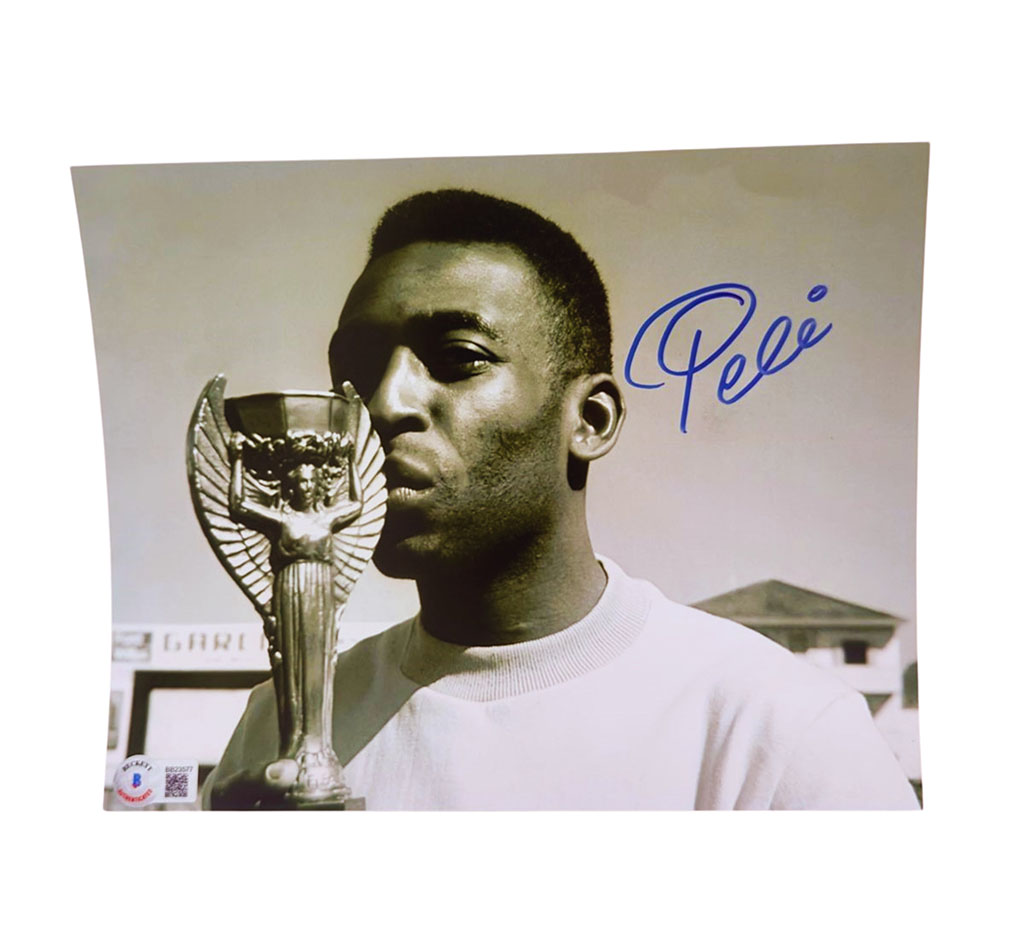 Pele Besando Trofeo Fotografia Autografiada Beckett BB23577.