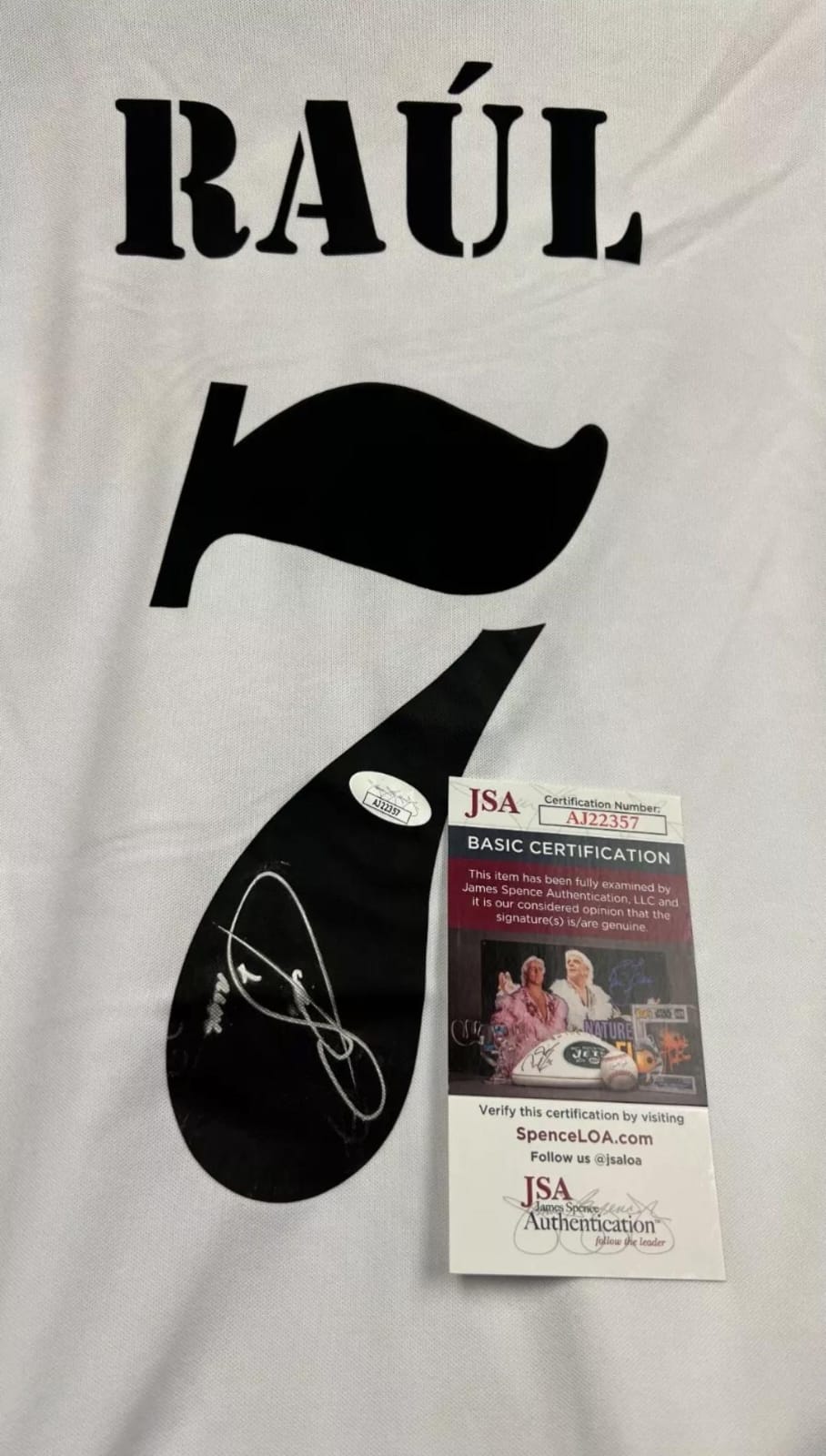 Playera autografiada por Raúl González firma autentificada por la compañía JSA con el número AJ22370
