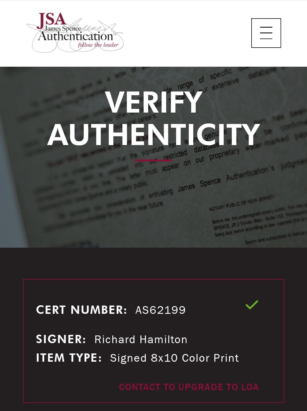 Richard Hamilton jugada fotografía autografiada certificada por JSA AS62199