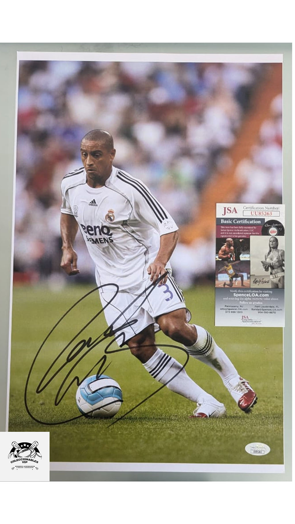 Be the first to review “Roberto Carlos Fotografía Real Madrid autografiada firma autentificada por la compañía JSA con el número UU85263”