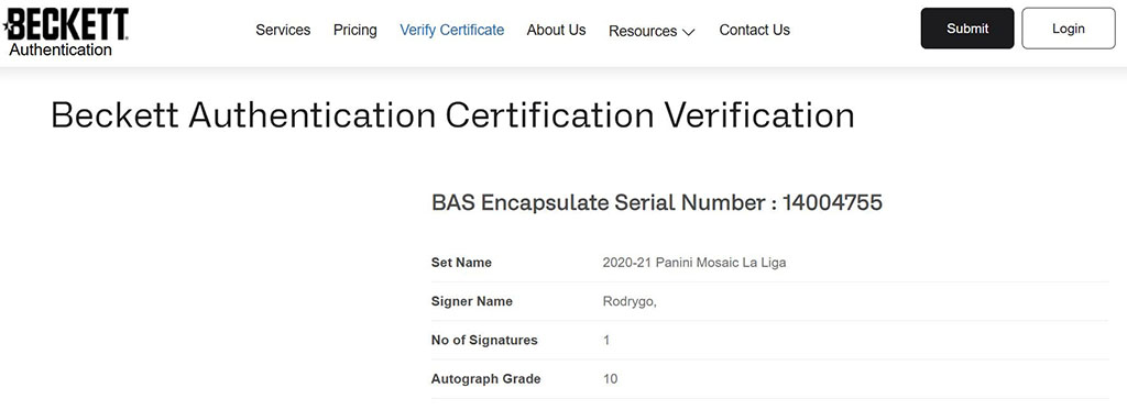 Artículo 100% original autenticado por una de las mejores empresas autenticadoras del mundo Beckett, la autenticidad se puede corroborar directamente en la página web de Beckett.