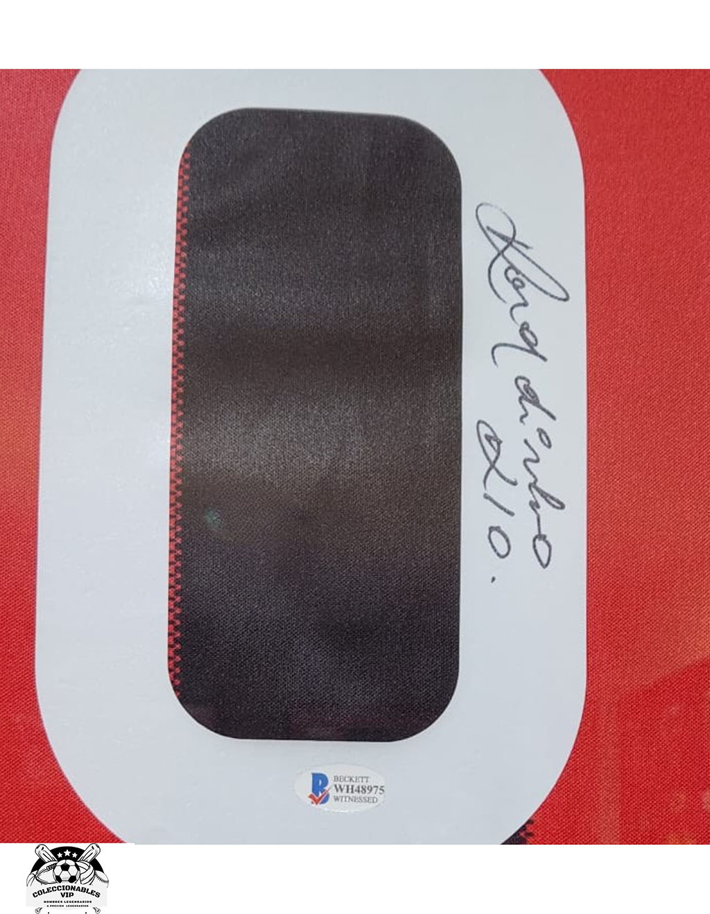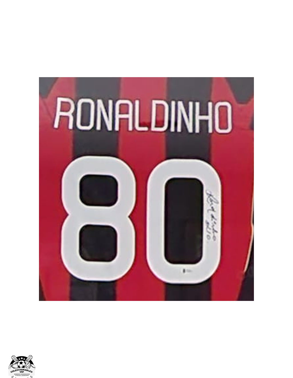 Ronaldinho Playera autografiada con tarjeta Enmarcada firma autentificada por la compañía Beckett con el número WH48975.