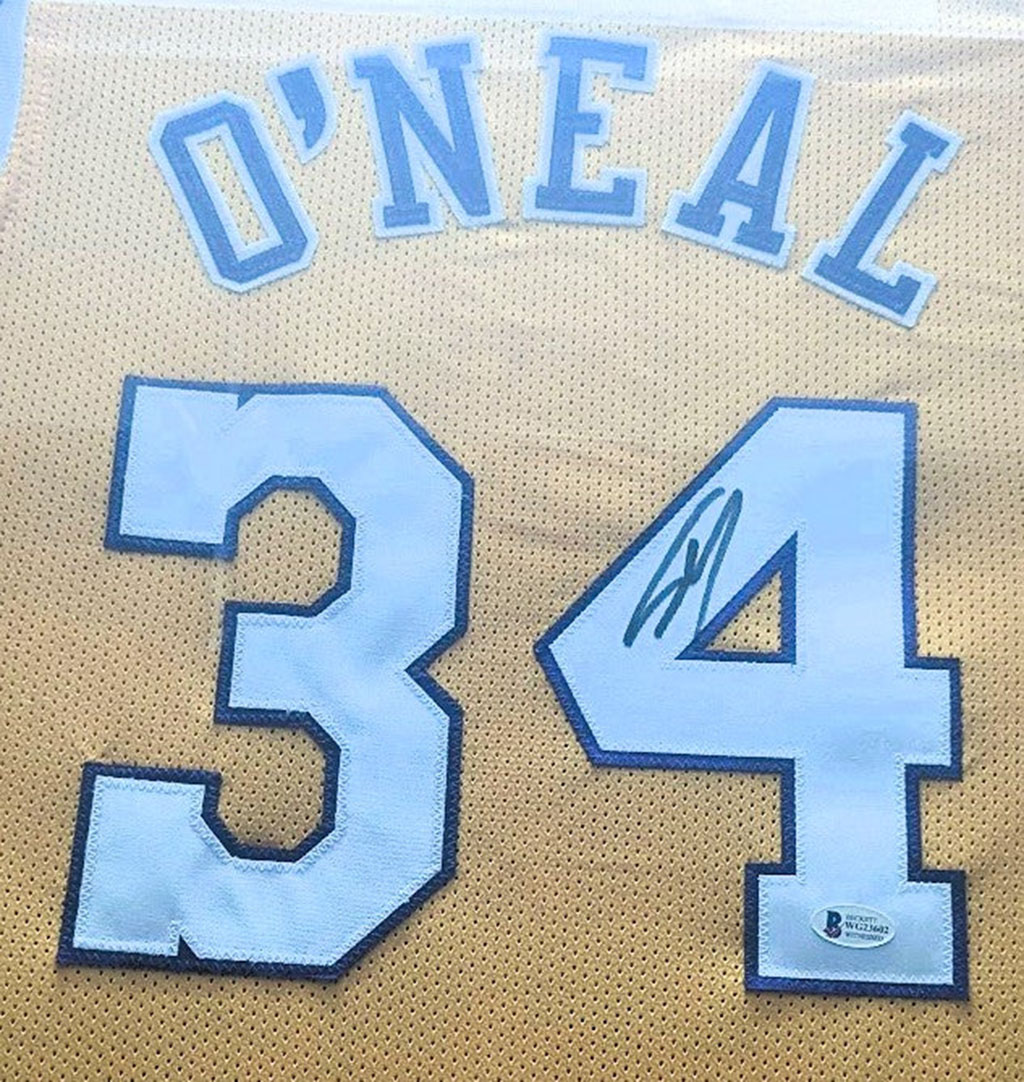 Shaquille O’neal Playera Lakers autografiada autenticada por Beckett WG23602 con tarjeta Enmarcada