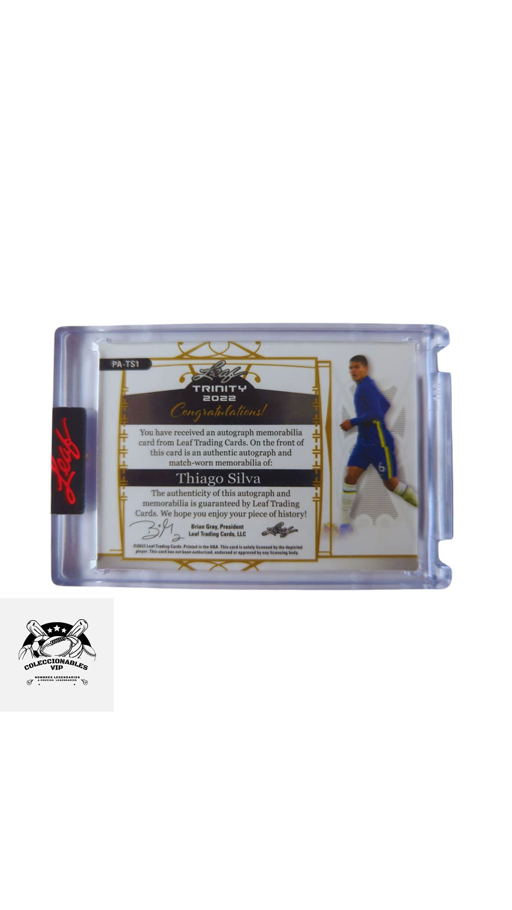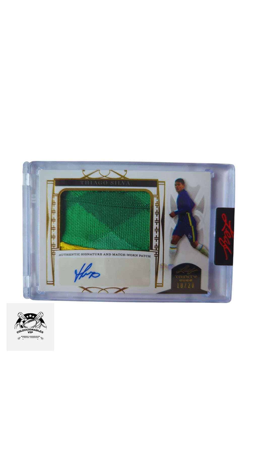 Tarjeta de Thiago Silva, en el frente de la tarjeta encontrarás pieza de playera y autógrafo, edición limitada 10/20.