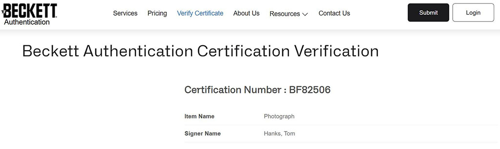 Tom Hanks Fotografía Autografiada firma certificada por Beckett BF82506.