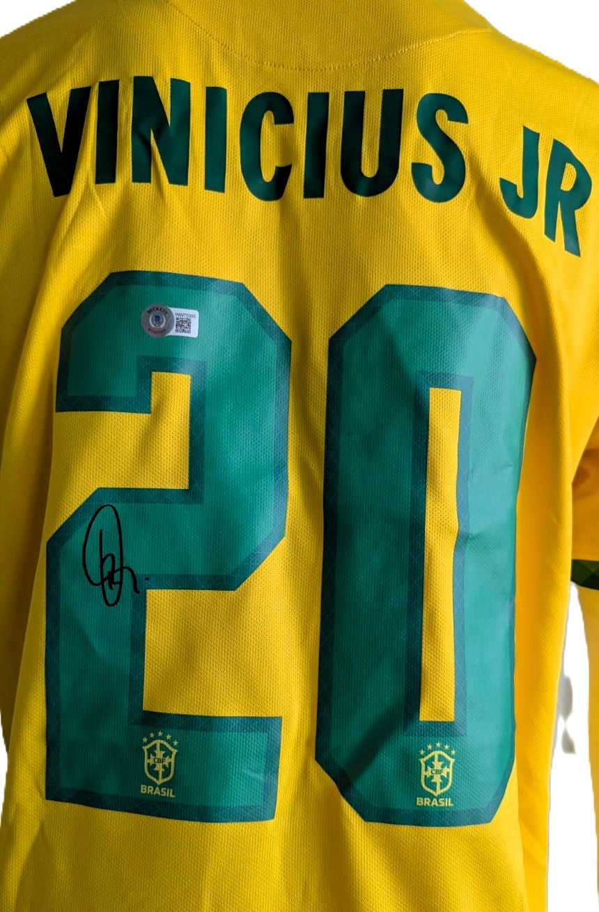 Vinicius Jr. Playera Brasil autografiada, firma certificada por Beckett WW70303.