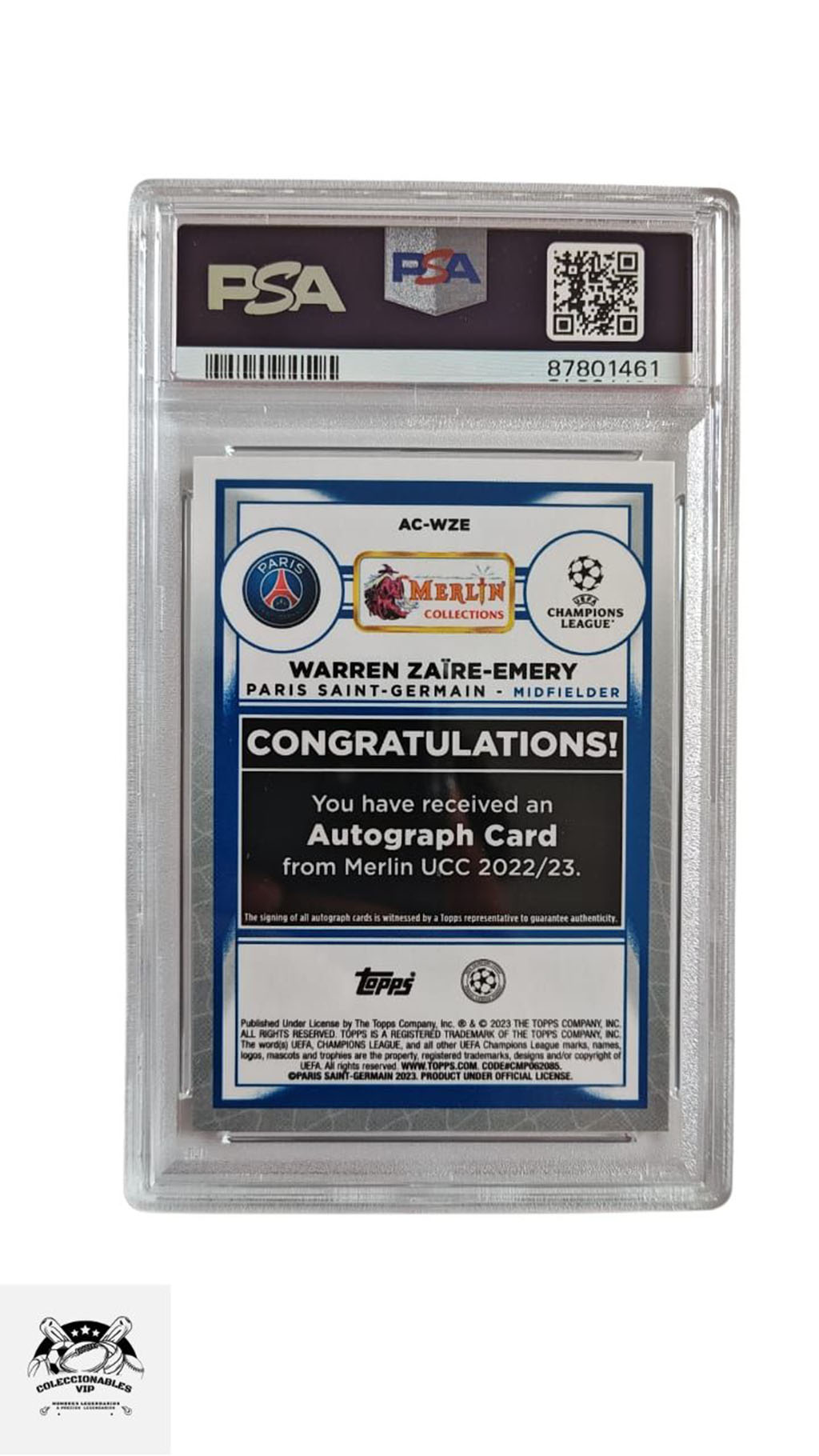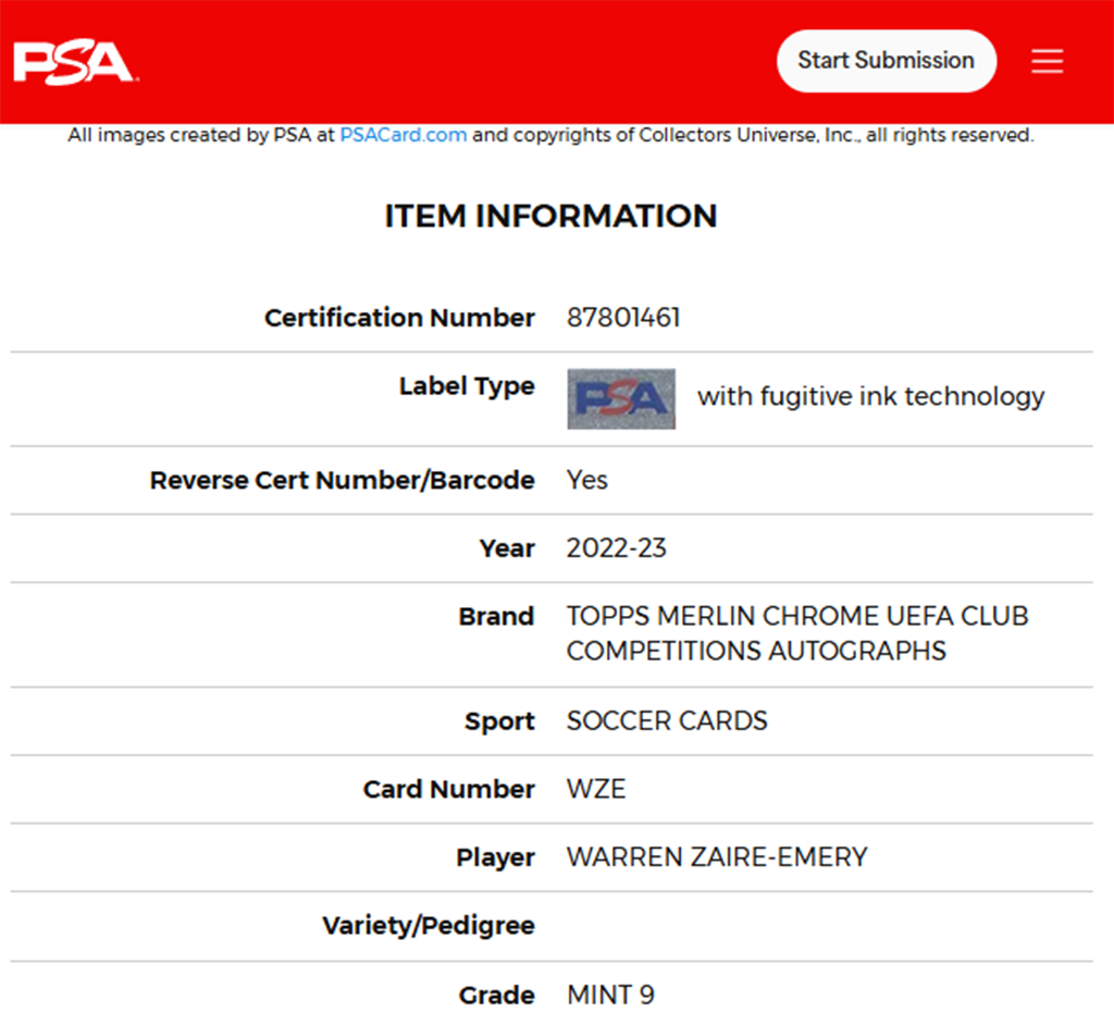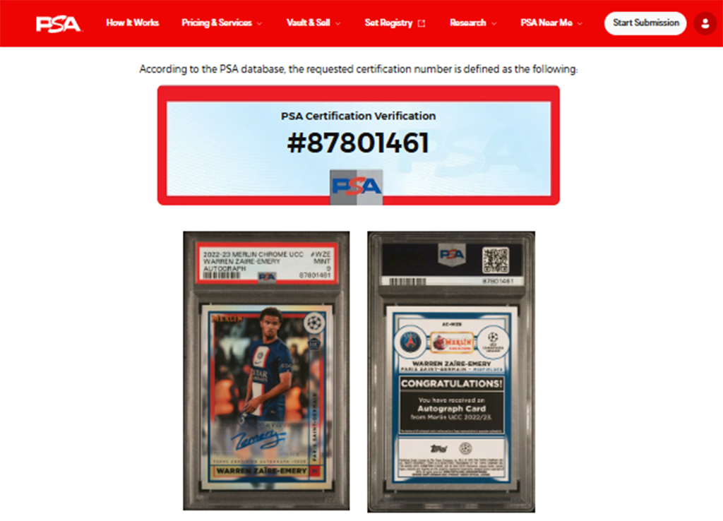 Firma certificada por PSA, es la empresa de autenticación y clasificación de terceros más grande y respetada del mundo para tarjetas coleccionables y recuerdos.