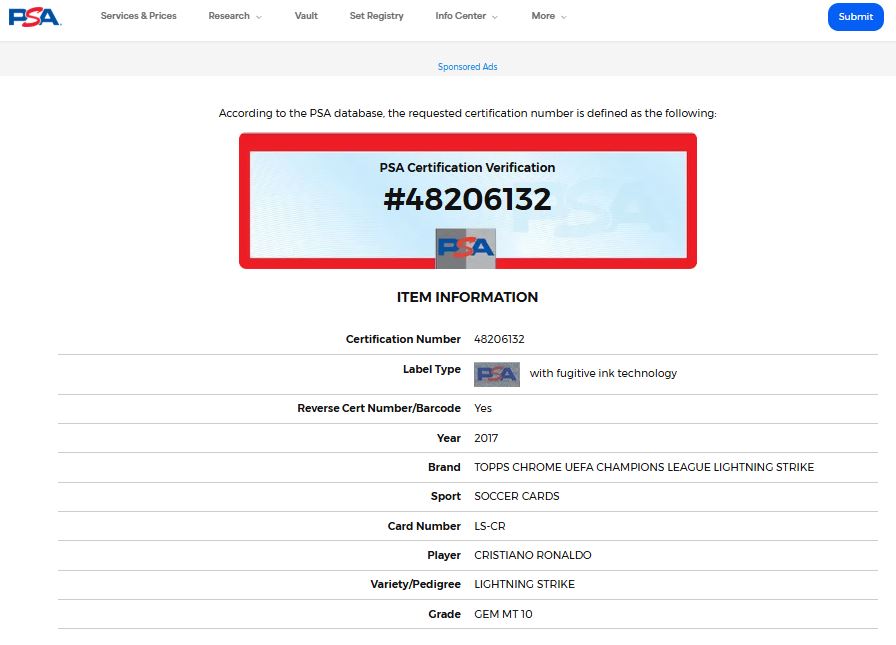 · Tarjeta 2017 Topps Chrome UEFA #LS-CR GEM MT 10 PSA 48206132
