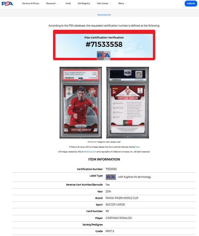 · Tarjeta 2014 Panini Prizm W/C MINT 9 PSA 71533558