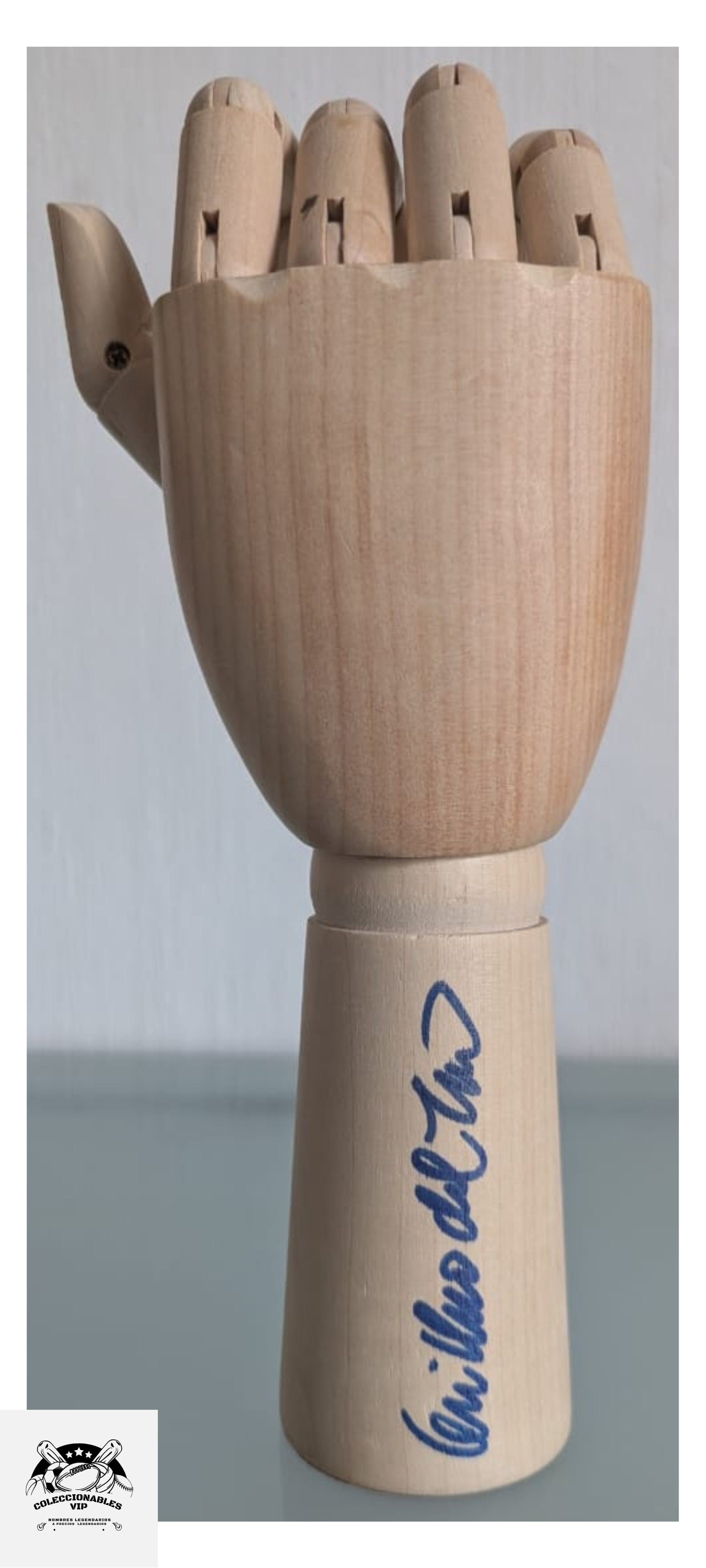 Guillermo del Toro manita de madera autografiada firma certificada por Beckett BM34981.