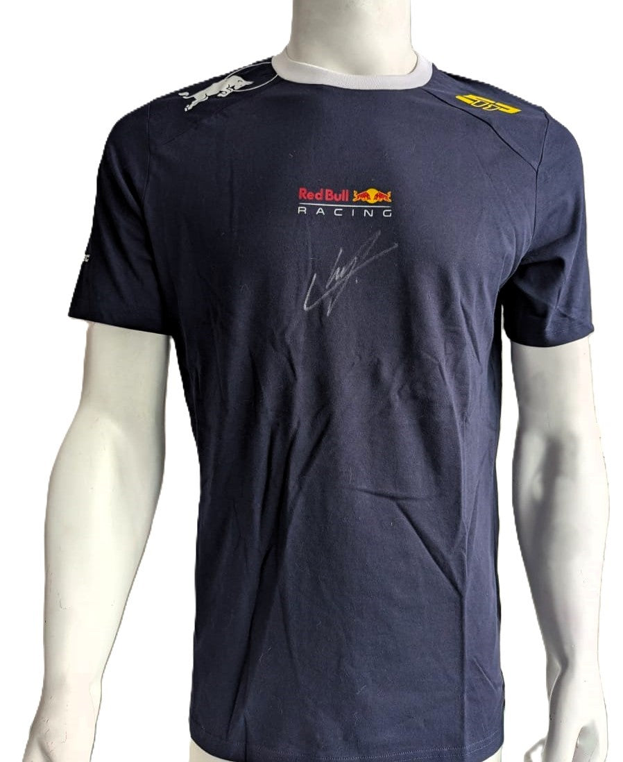Playera autografiada por Sergio "Checo" Pérez firma autentificada por la compañía Beckett con el número BH060230.