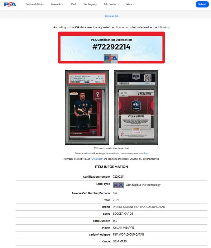 Tarjeta 2022 Panini Instant GEM MT 10 PSA 72292214