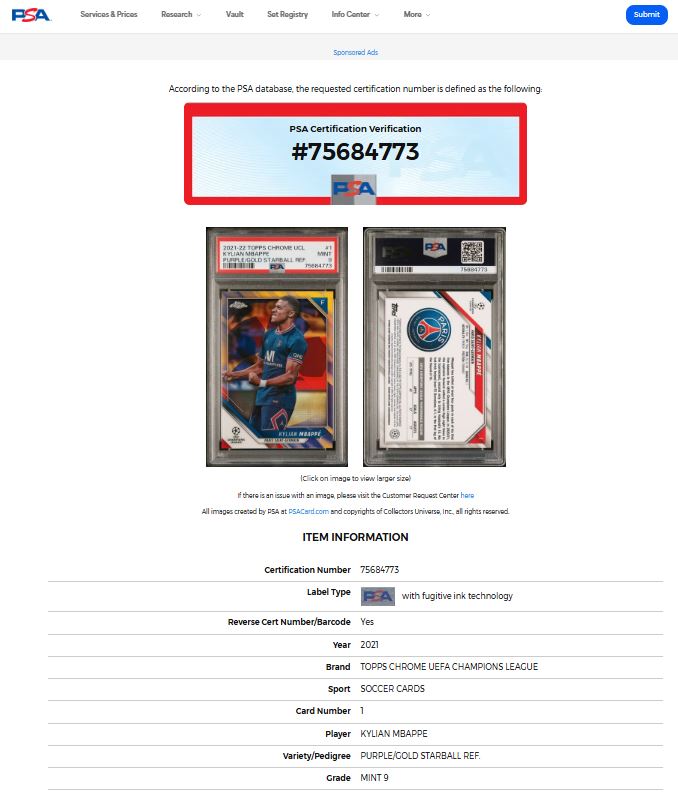 Tarjeta 2021-22 Topps Chrome UCL MINT 9 PSA 75684773